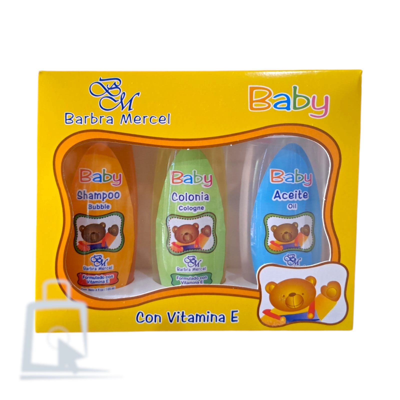 Paquete de tres productos para bebe con vitamina e.